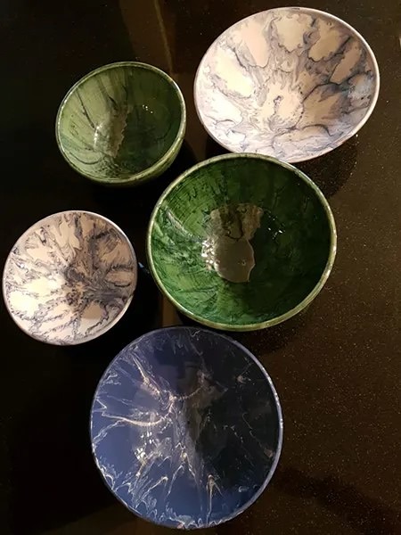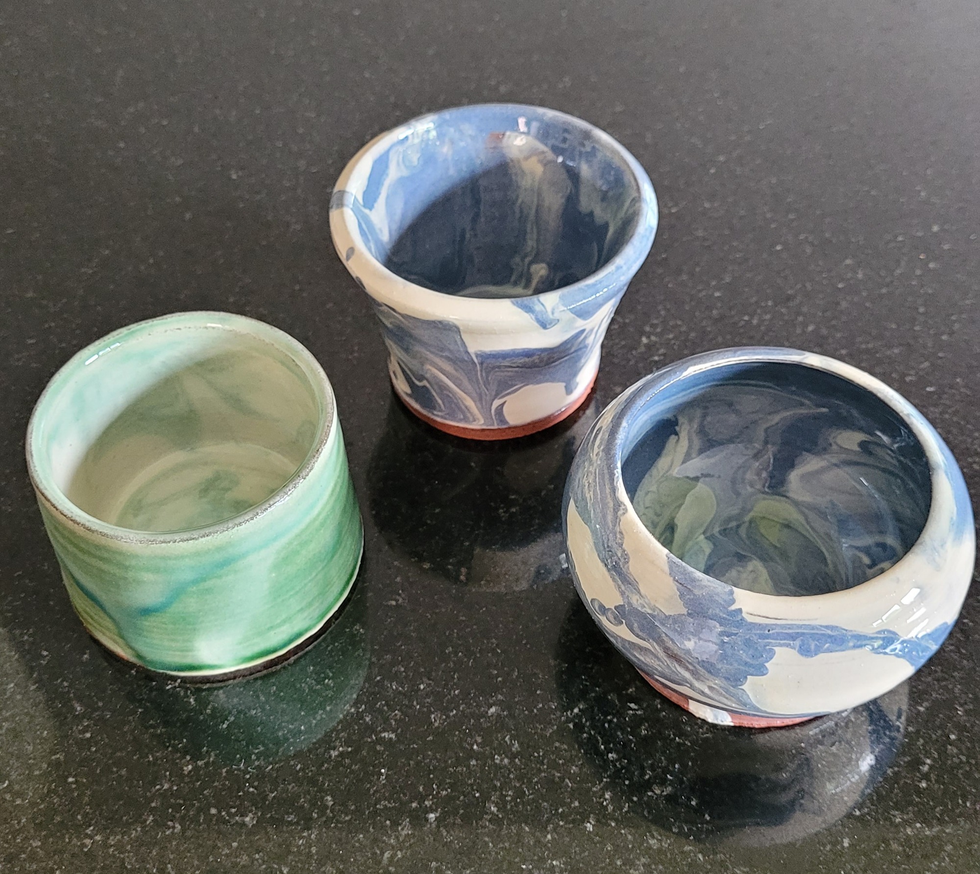 In the pottery sessions you get to make some pots on the wheel under expert guidance. The benefit of using slips (coloured liquid clay) instead of glazes is that you are able to decorate your pots with the coloured slips in the same session. All pots are dried after the session then biscuit fired and then Chris adds a food-safe clear glaze to the pots and another firing for you. Your finished pots will be ready for collection 3-4 weeks after the class. All materials and firing of your pieces are included in the prices.